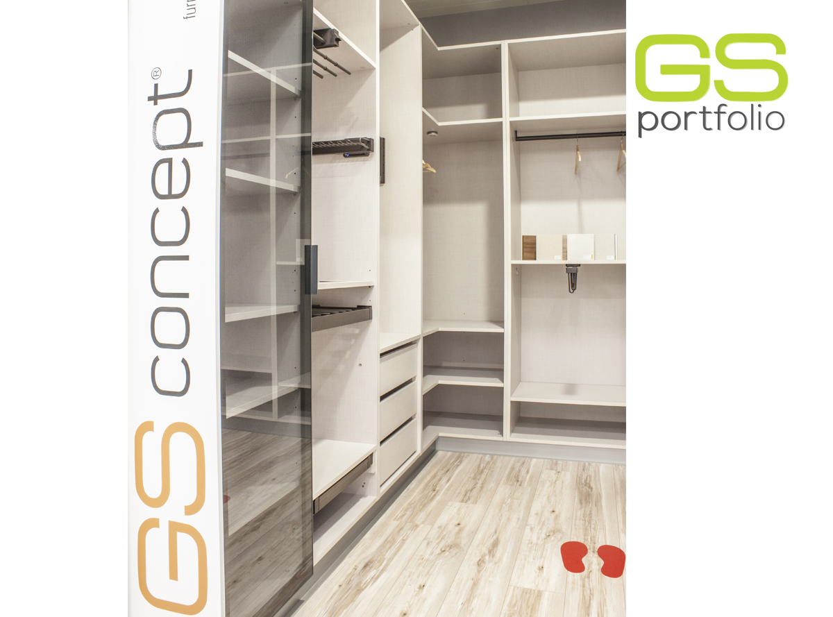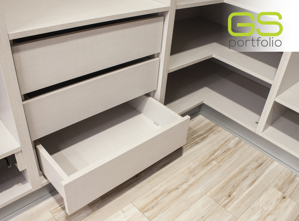 - Closet GS CONCEPT, U arrangement, with melamine interior 19 mm in Cancun Linen.