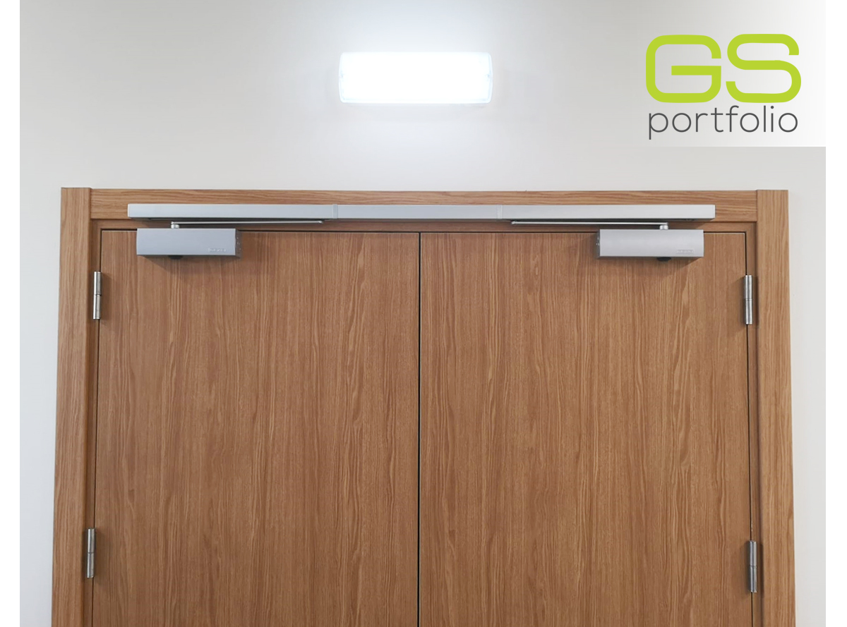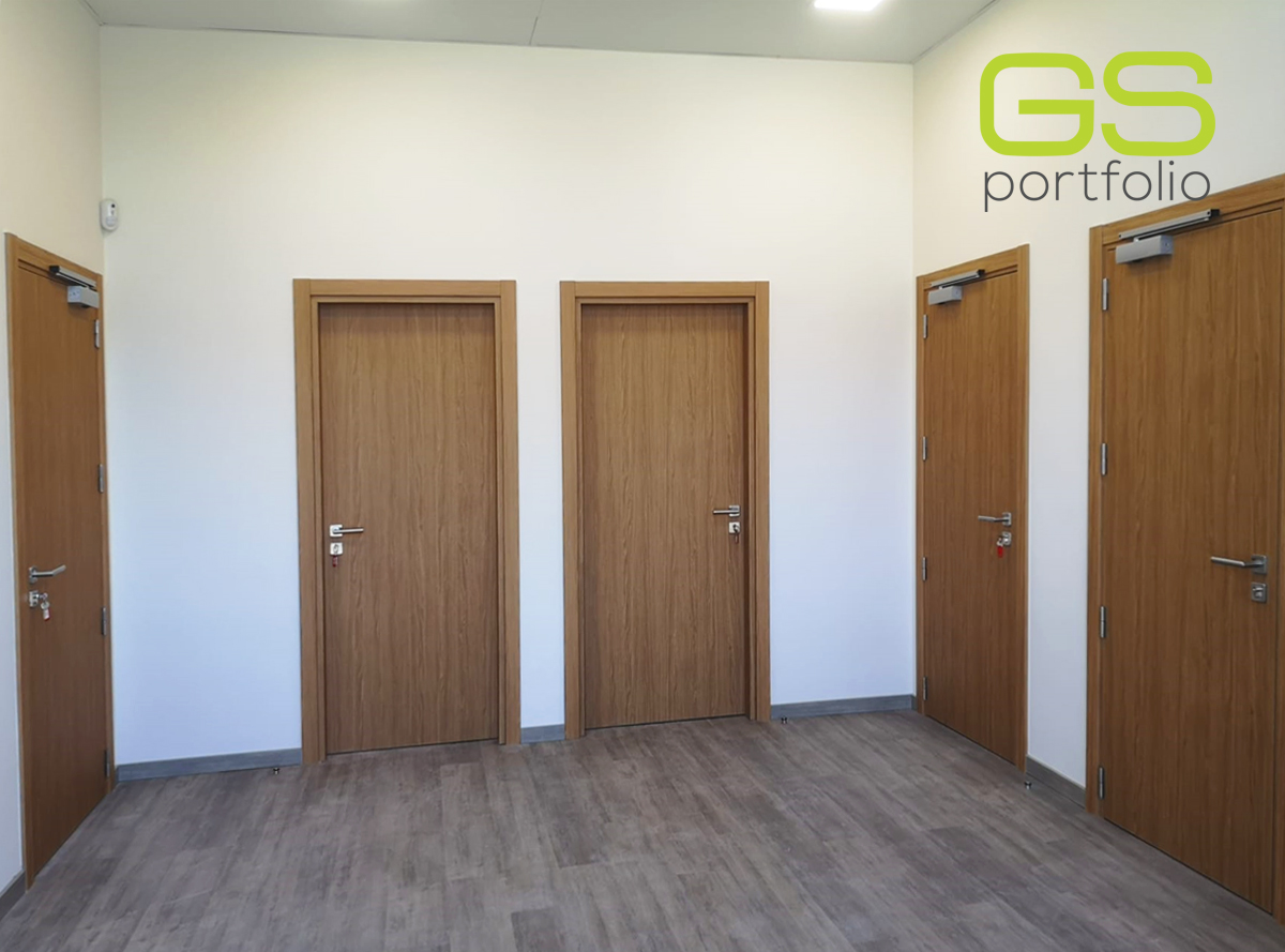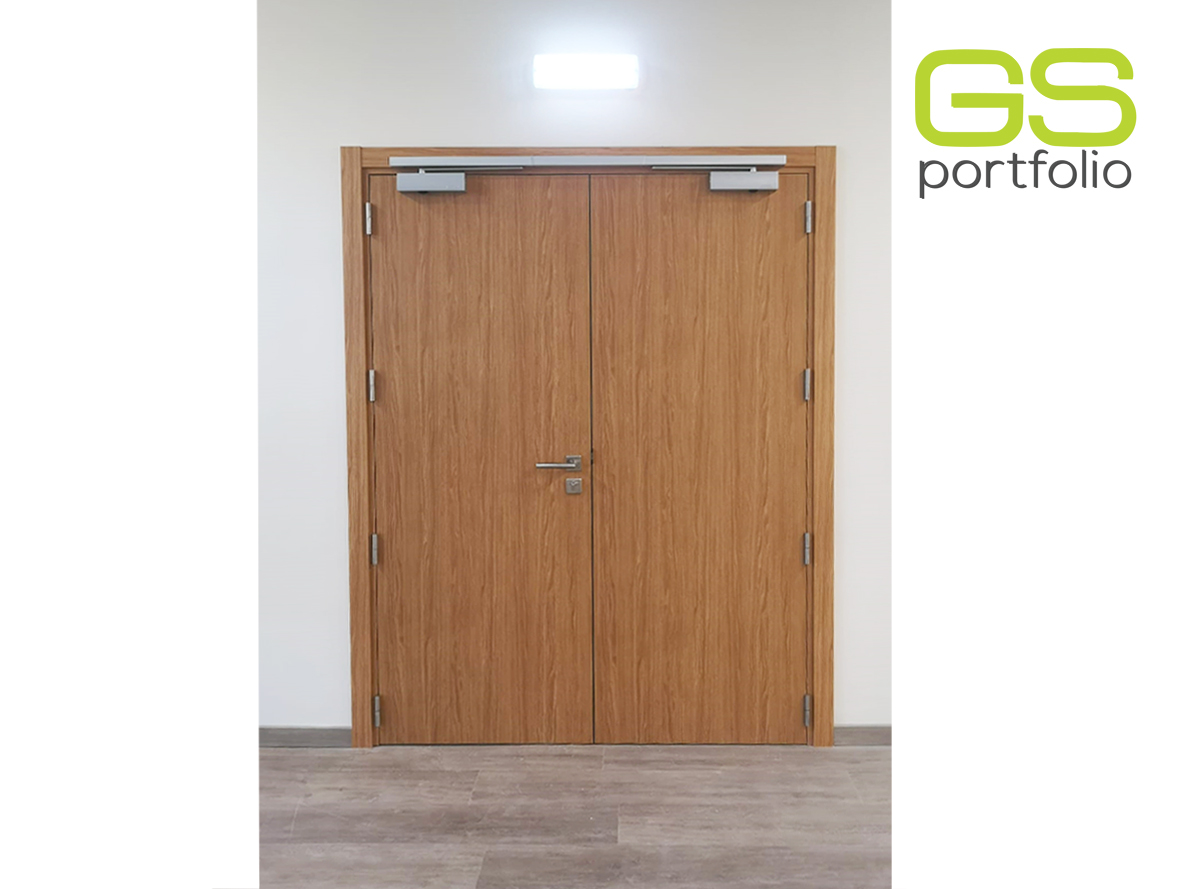 - GS DOORS hinged fire doors coated with VINYL NATUR: Savannah Oak